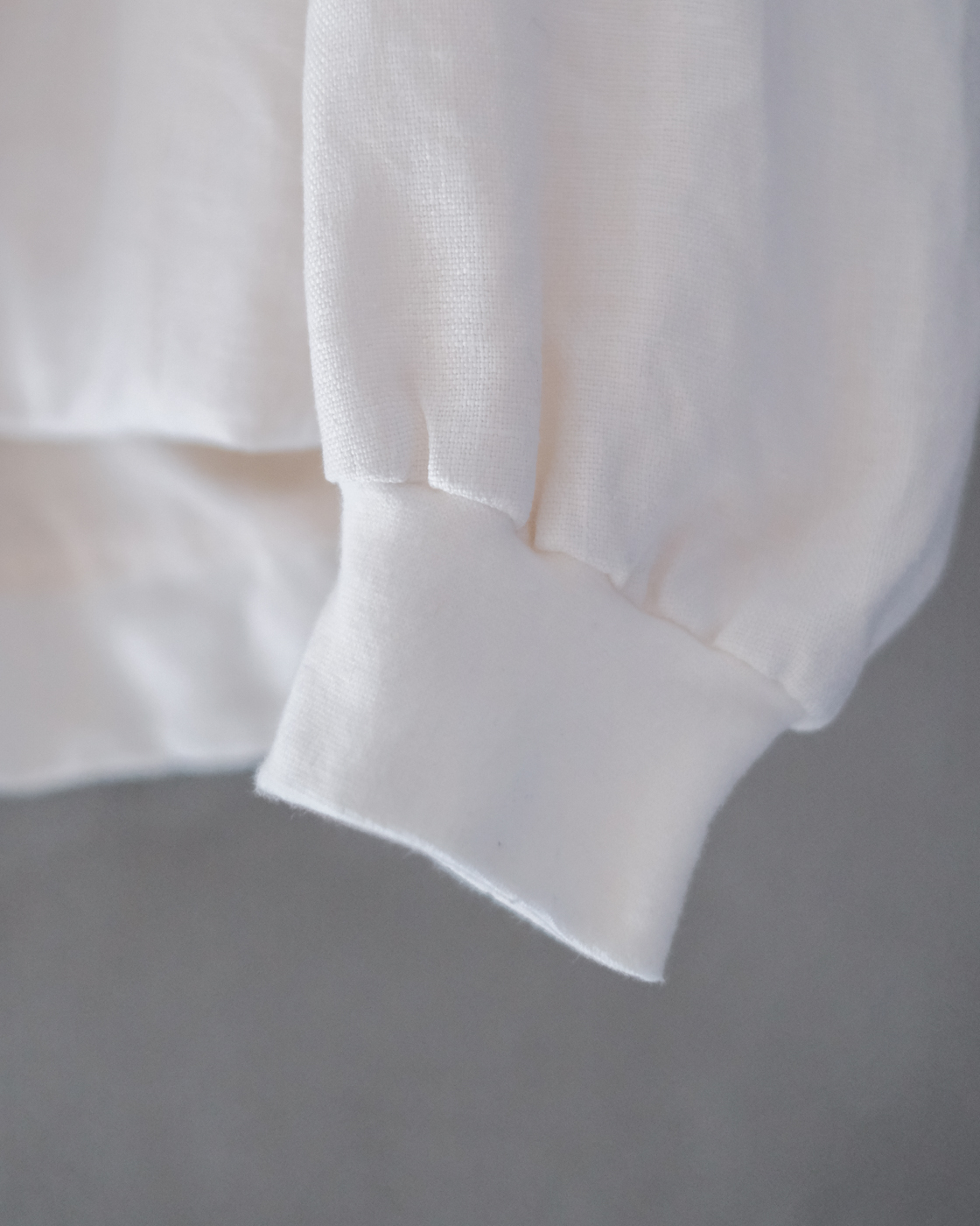 袖口には柔らかいリブが施されており、着用した時のお袖部分の生地が少しくしゅっと溜まるのも女性の愛らしさを感じていただけます。