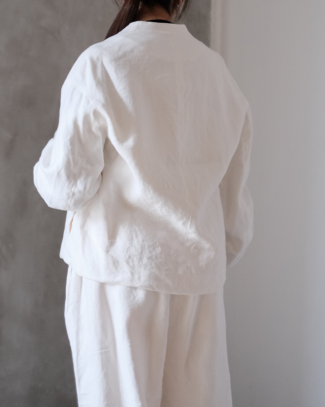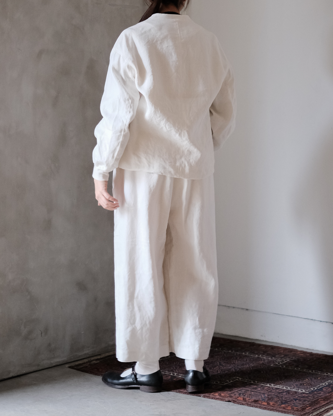 ヘンプならではのハリがあり、しなやかな着心地も持ち合わせたしっかりとした生地感です。