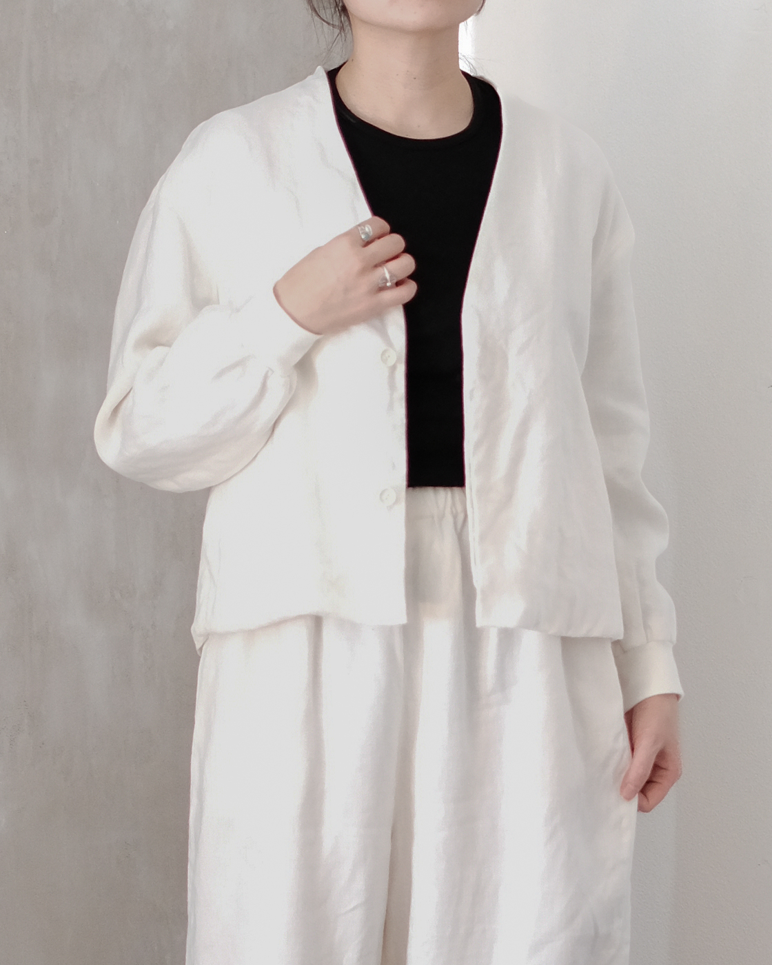程よい光沢のある生地は上品さがある為、同素材のパンツとセットアップでオケージョンのシーンにもお勧めです。
