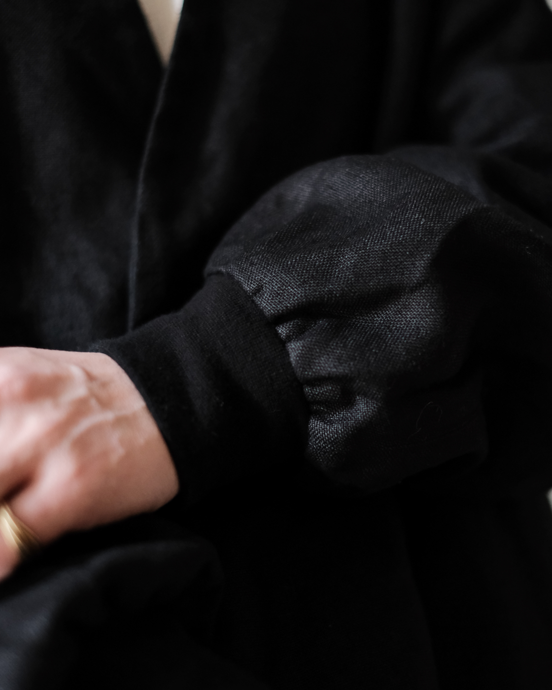 袖口には柔らかいリブが施されており、着用した時のお袖部分の生地が少しくしゅっと溜まるのも女性の愛らしさを感じていただけます。