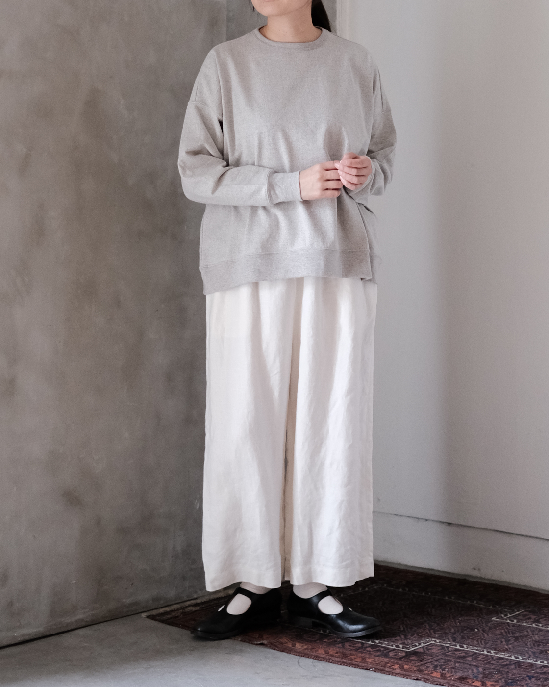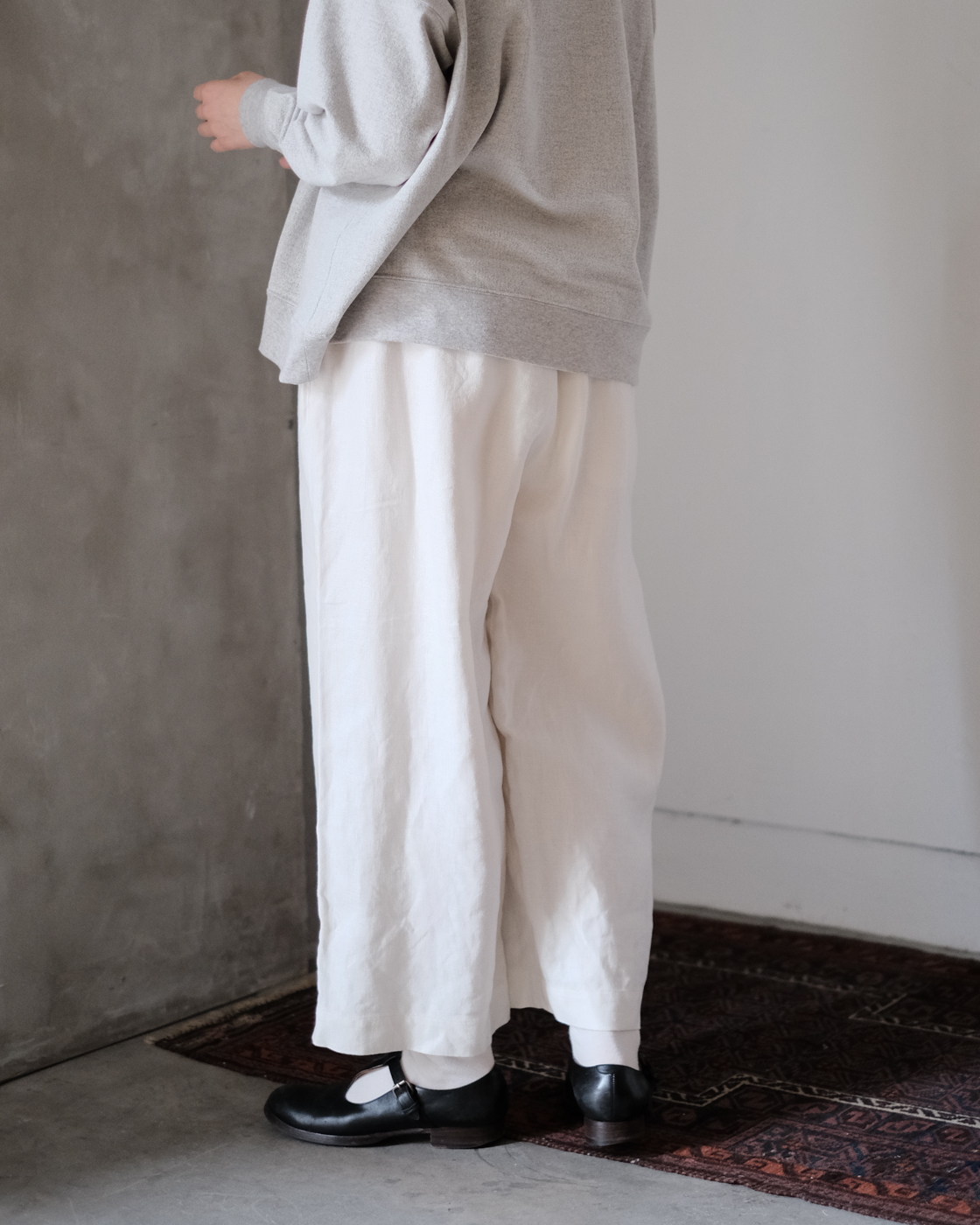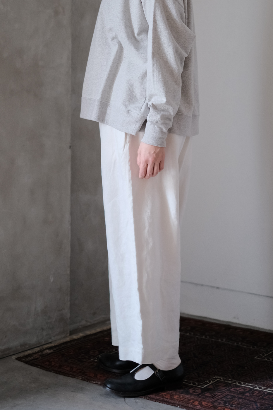ワイドシルエットですが、生地に柔らかさもあるので落ち感があり、