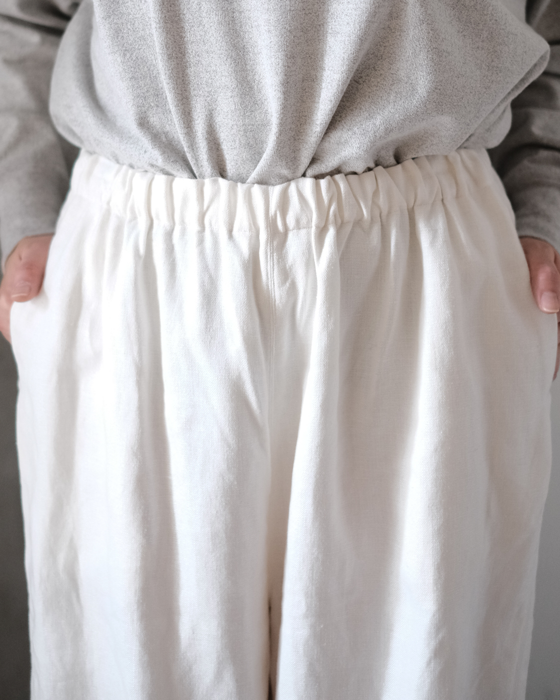 ヘンプならではのハリがあり、しなやかな着心地も持ち合わせたしっかりとした生地感です。