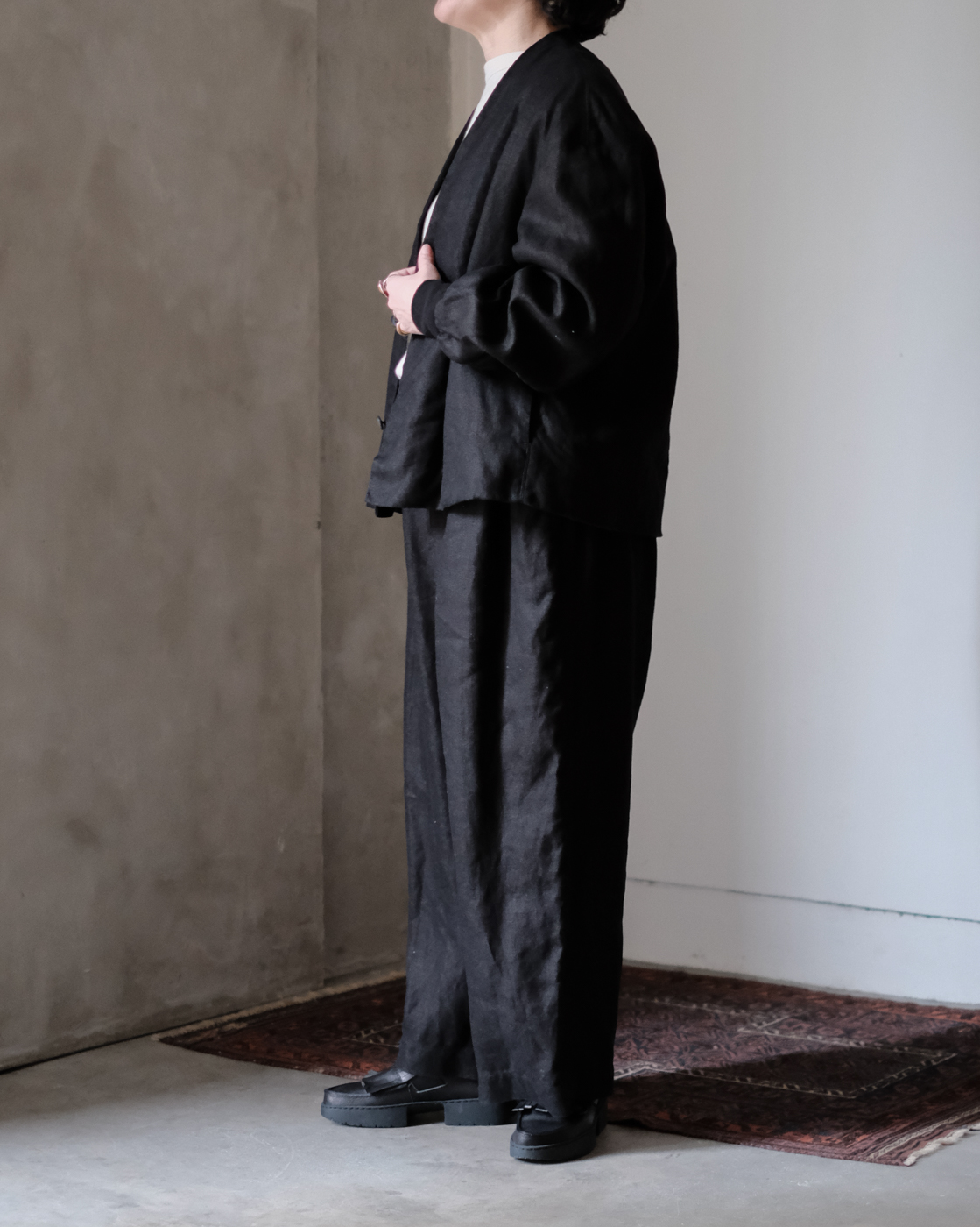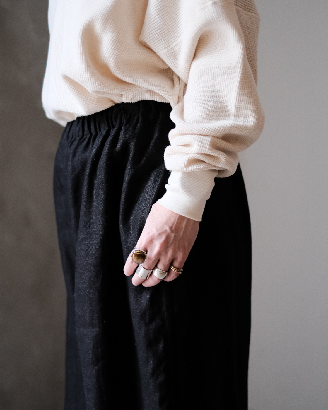 ヘンプならではのハリがあり、しなやかな着心地も持ち合わせたしっかりとした生地感です。