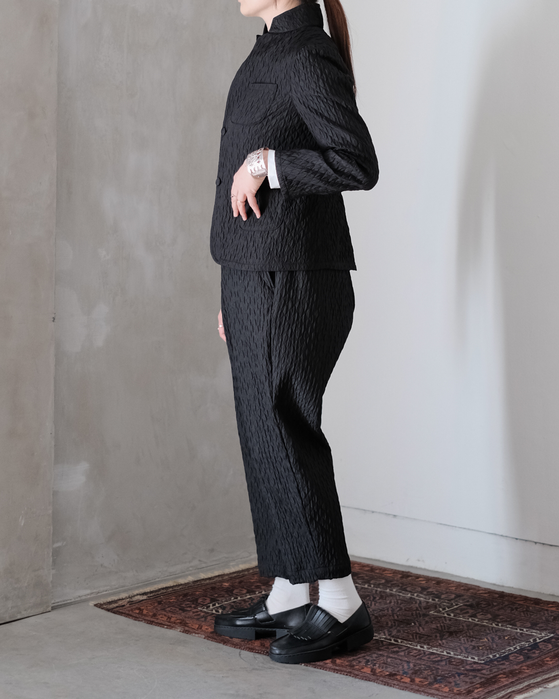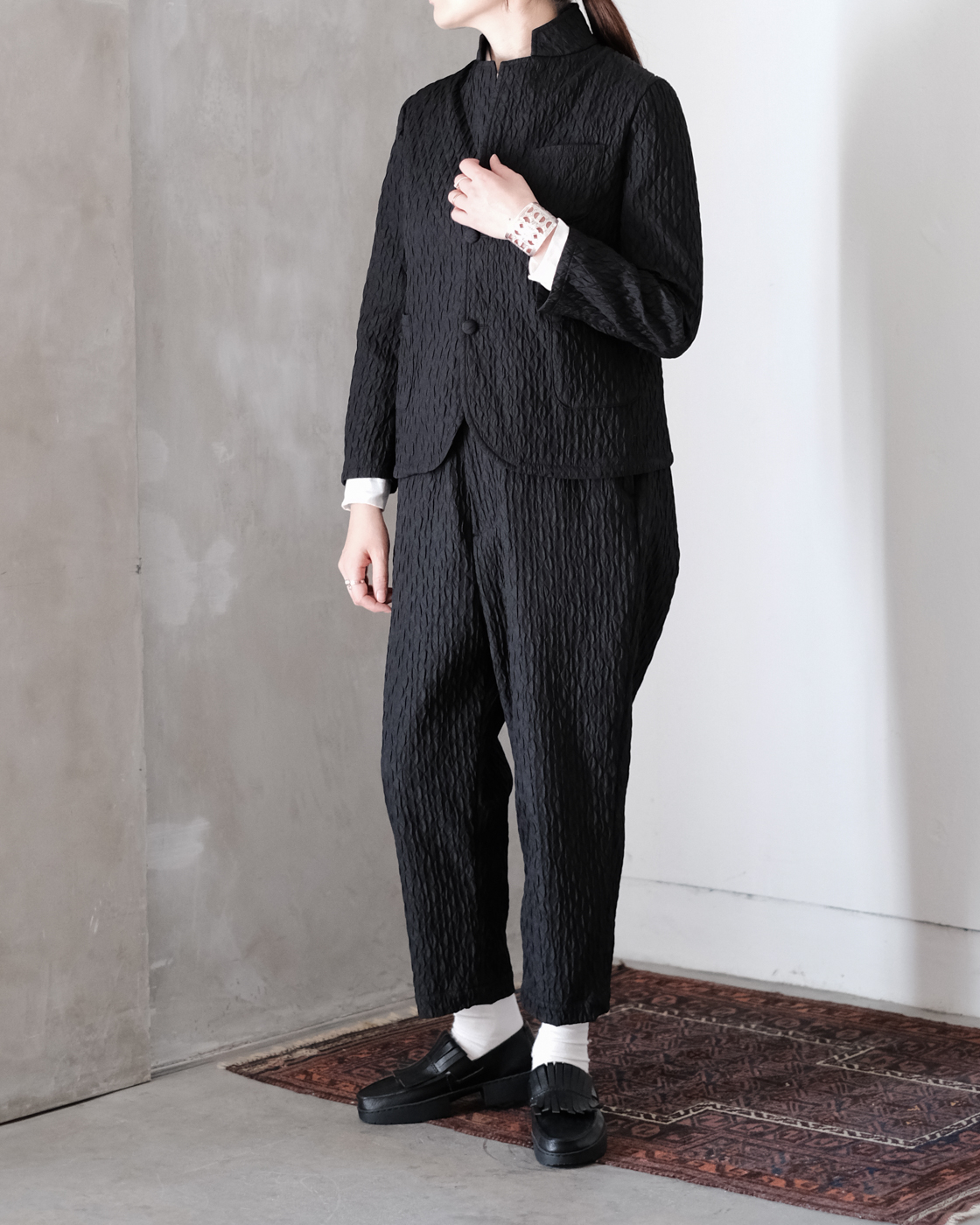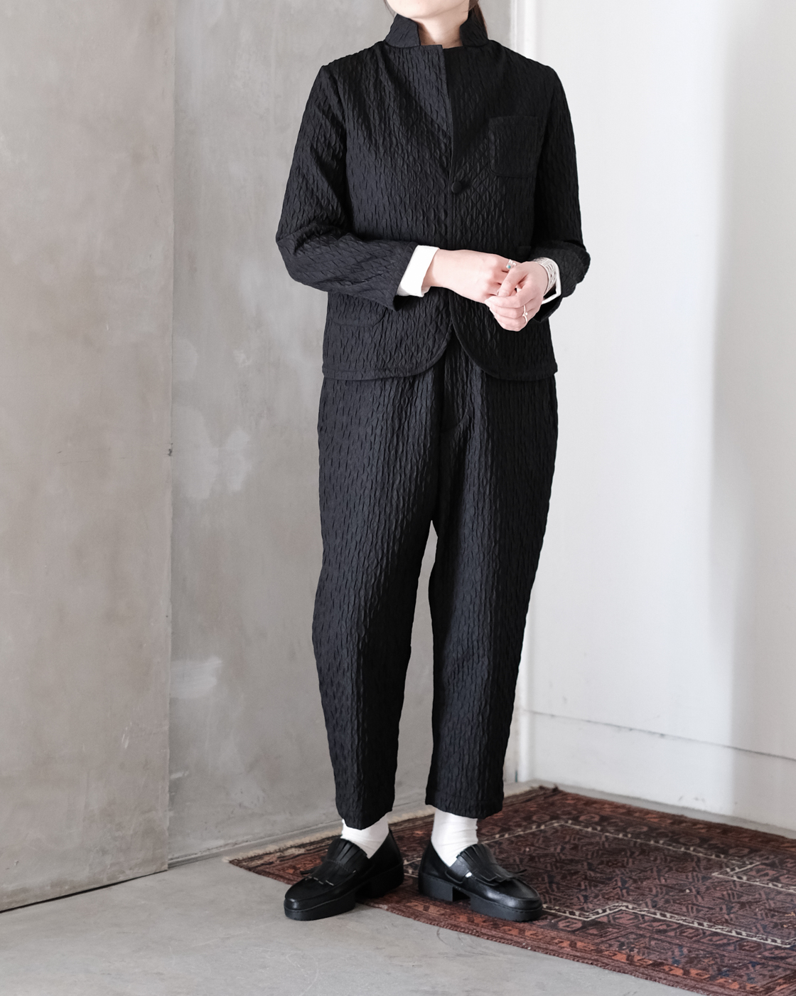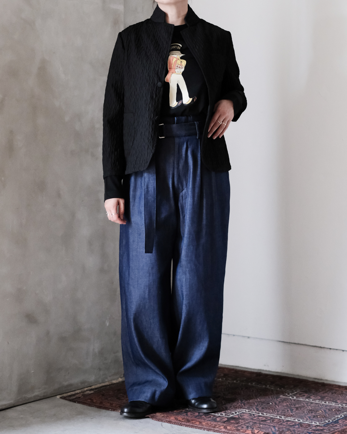 同素材のMATELASSE SARROUEL TAPERED PANTSとセットアップでの着こなしもお勧めです。