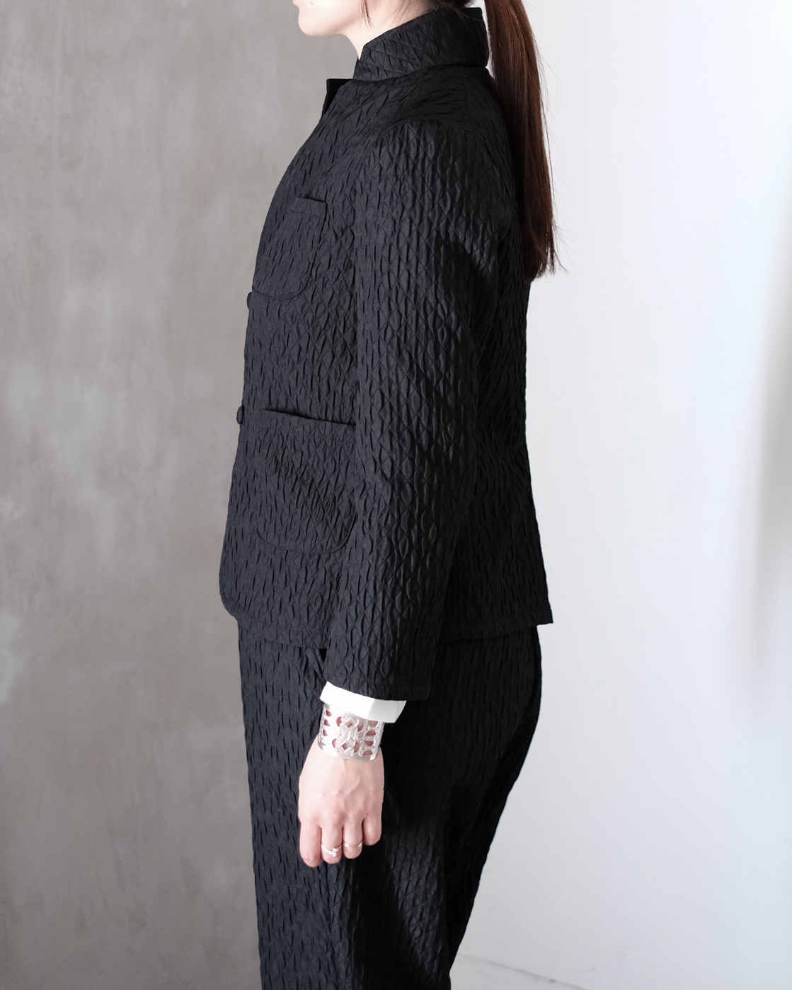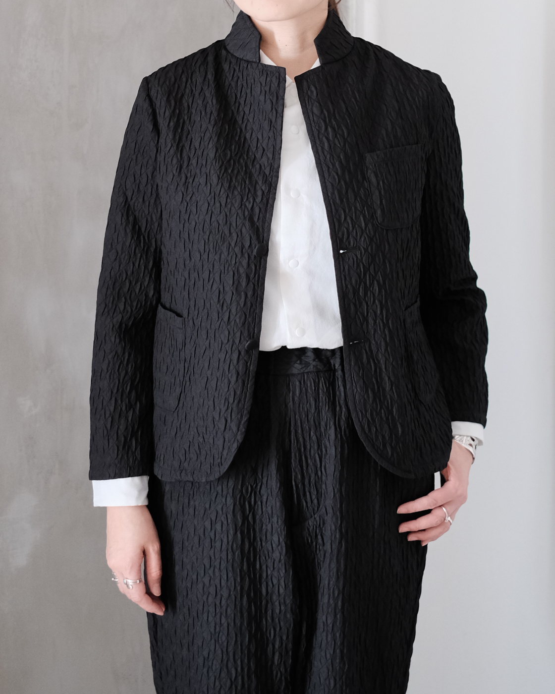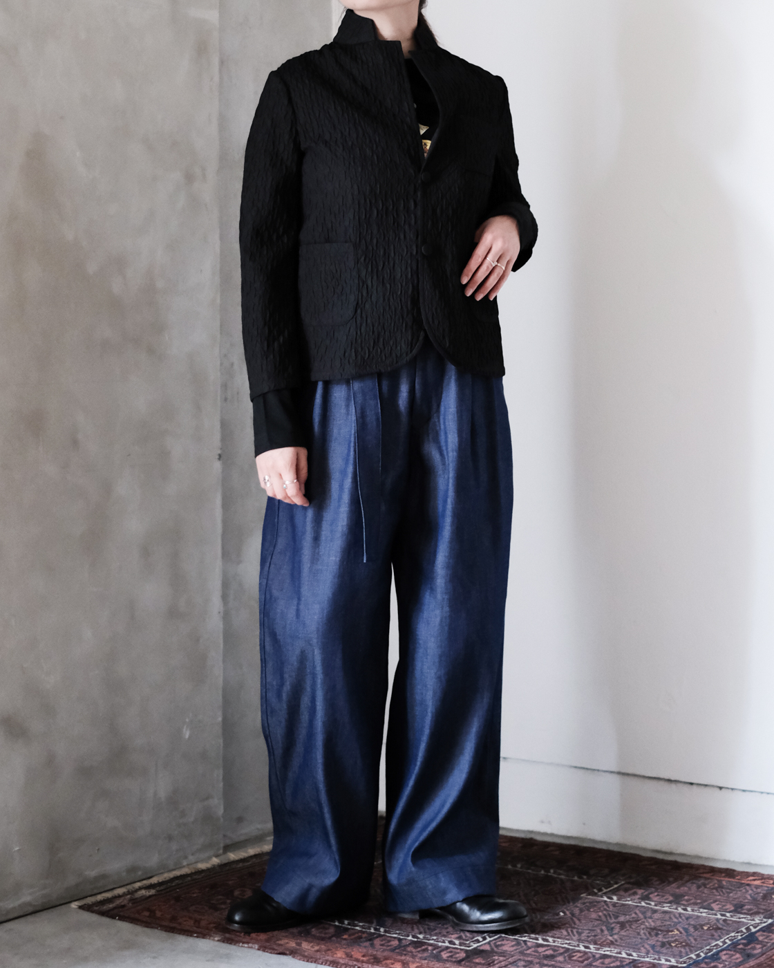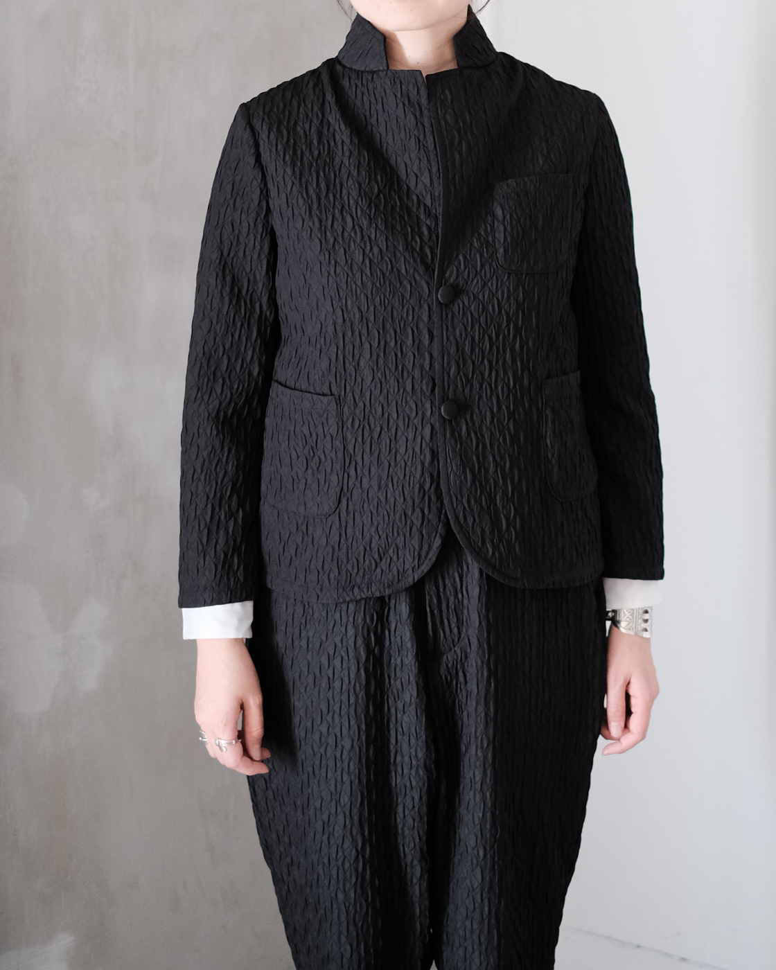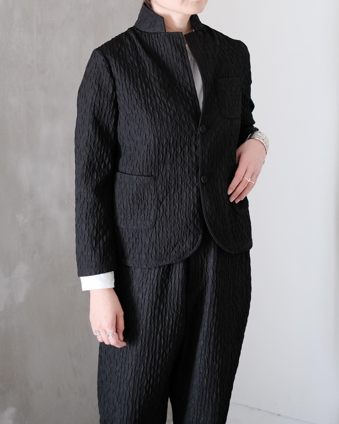 同素材のMATELASSE SARROUEL TAPERED PANTSとセットアップでの着こなしもお勧めです。