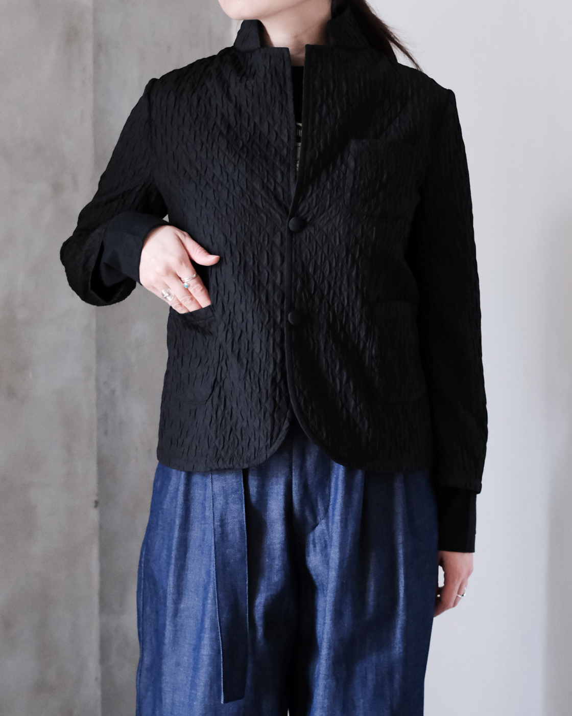 丁寧に仕立てられたジャケットは纏うだけで、様になります。