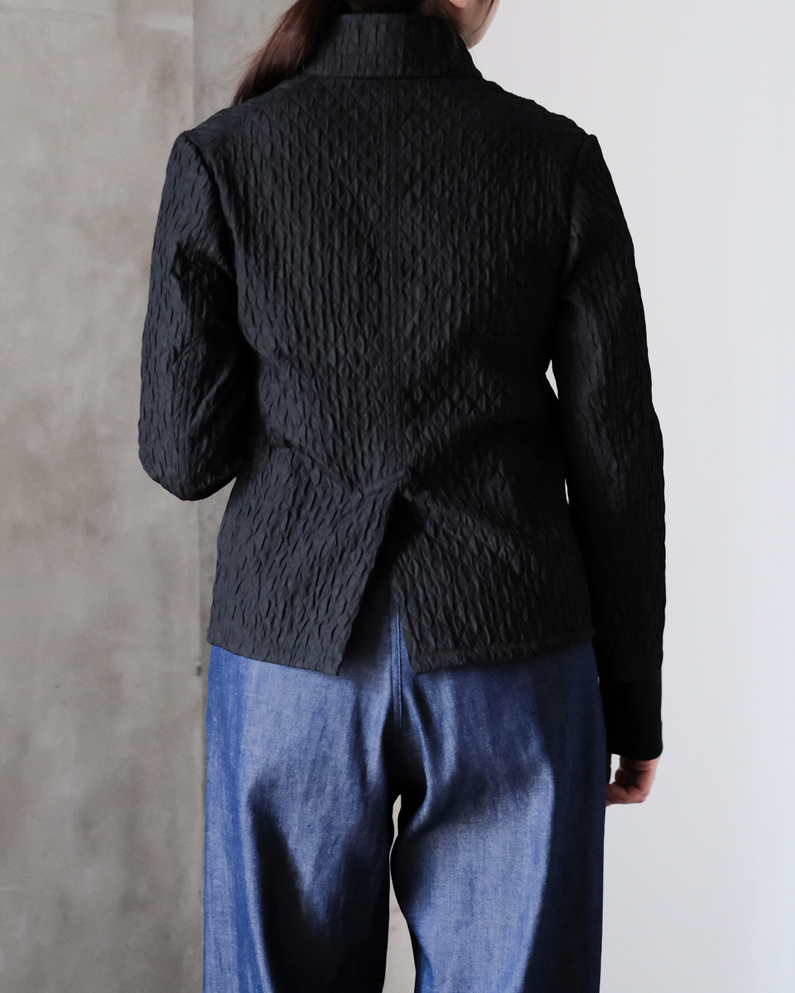 裏地はついておりませんが、袖通しの良い素材なのでスムーズに羽織っていただけます。