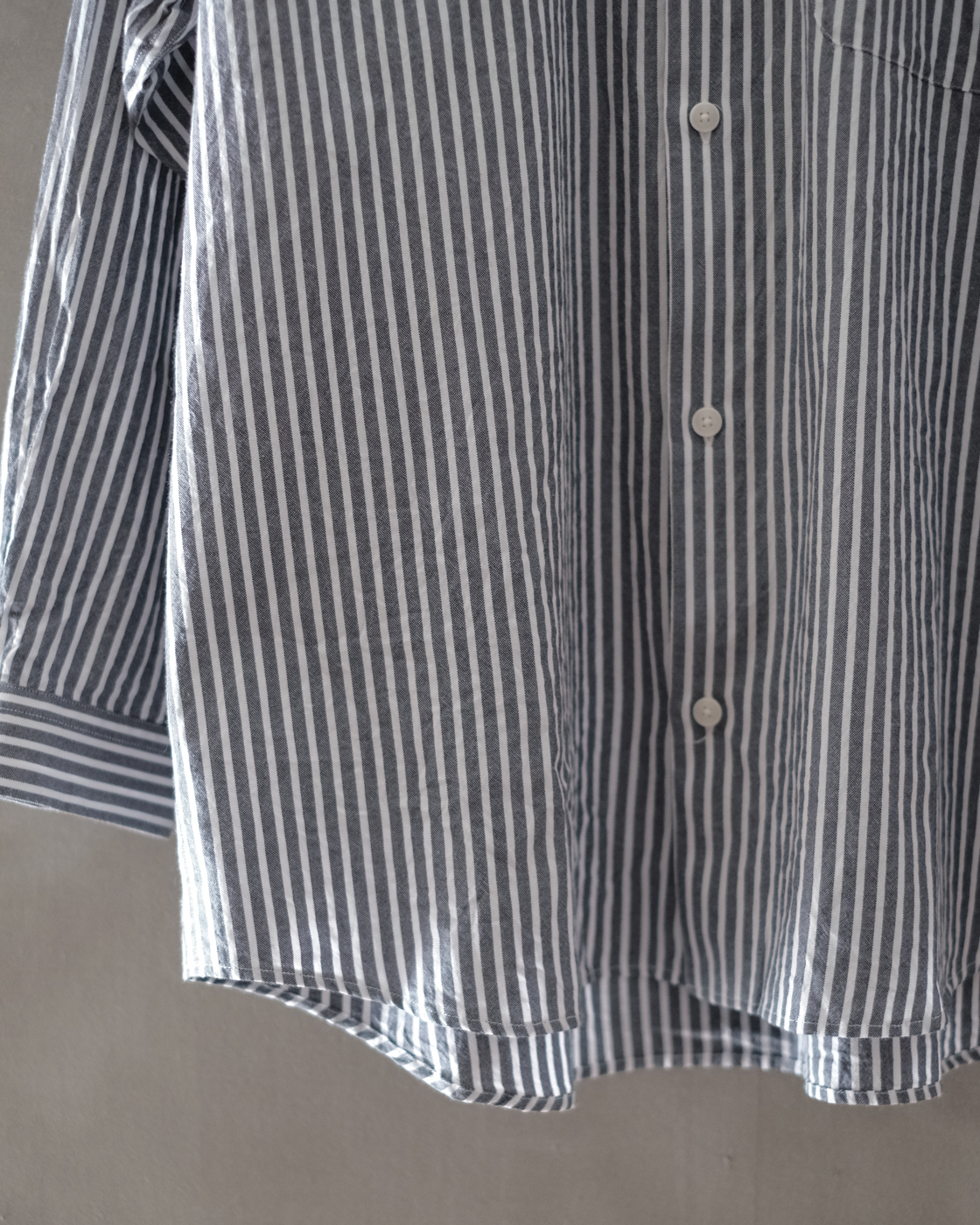 一般的なオックスフォードと言えば、凹凸のある厚手の印象ですが、サラッとした質感に清涼感があり、